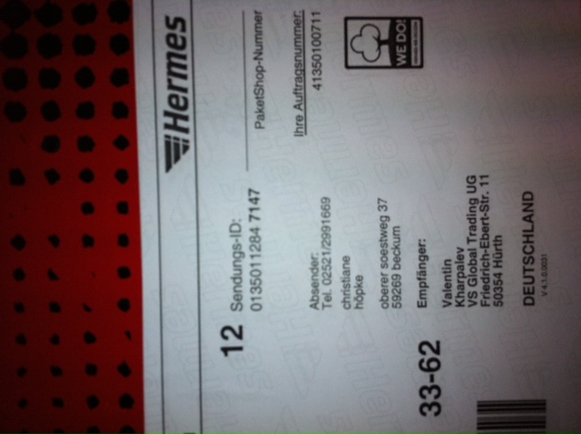 Waren eingetroffen sind. Vielen Dank für Ihren Service!